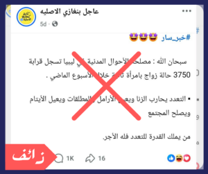 لا صحة لادعاء تسجيل 3750 حالة زواج بامرأة ثانية في ليبيا خلال أسبوع