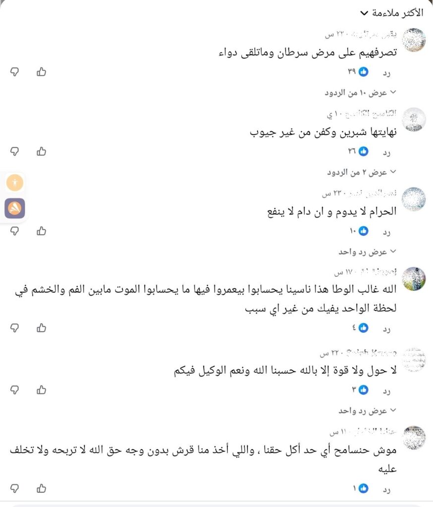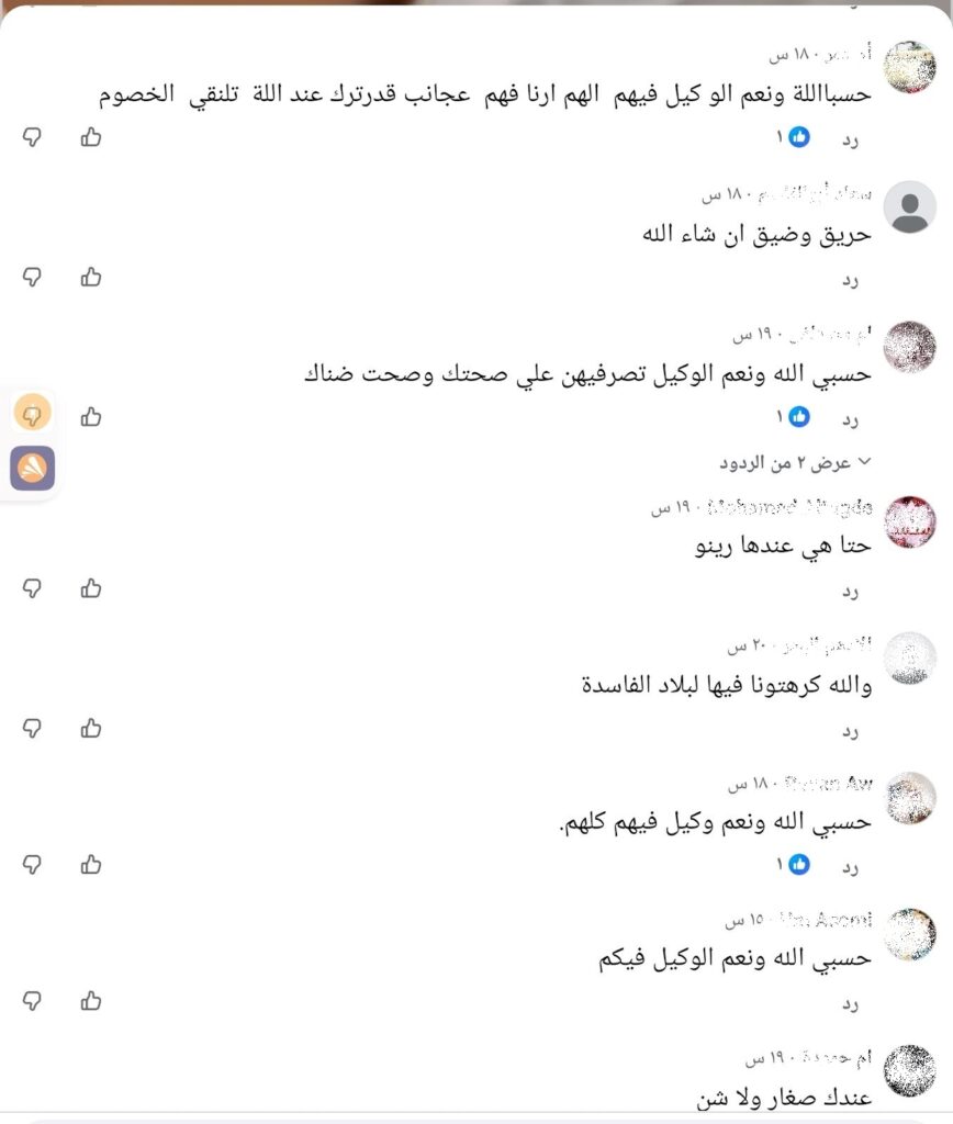 صورة ملتقطة من الشاشة بتاريخ 13/11/2025 يظهر فيها تعليقات مستخدمي فيسبوك