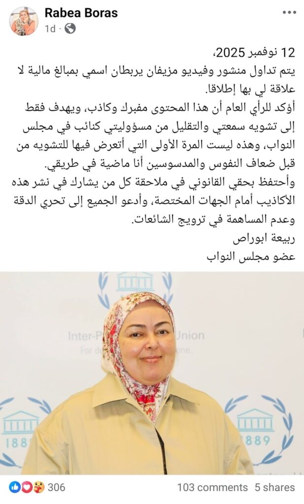 “يتم تداول منشور وفيديو مزيفان يربطان اسمي بمبالغ مالية لا علاقة لي بها إطلاقا.