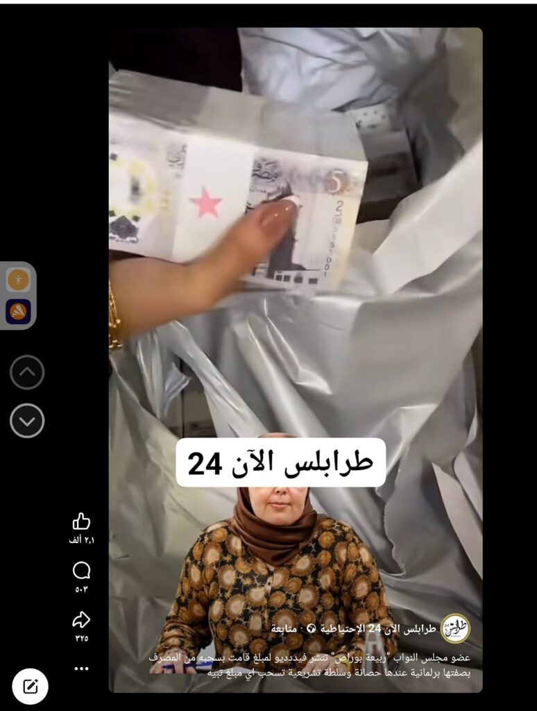 تداولت حسابات وصفحات على موقع فيسبوك مقطع فيديو يُظهر رزم أموال، مدعيةً أن النائبة في مجلس النواب الليبي ربيعة بوراس هي من قامت بنشره عبر حساباتها الرسمية.
