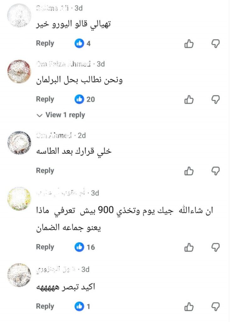 صور ملتقطة من الشاشة بتاريخ 17/04/2026 لتعليقات مستخدمي فيسبوك