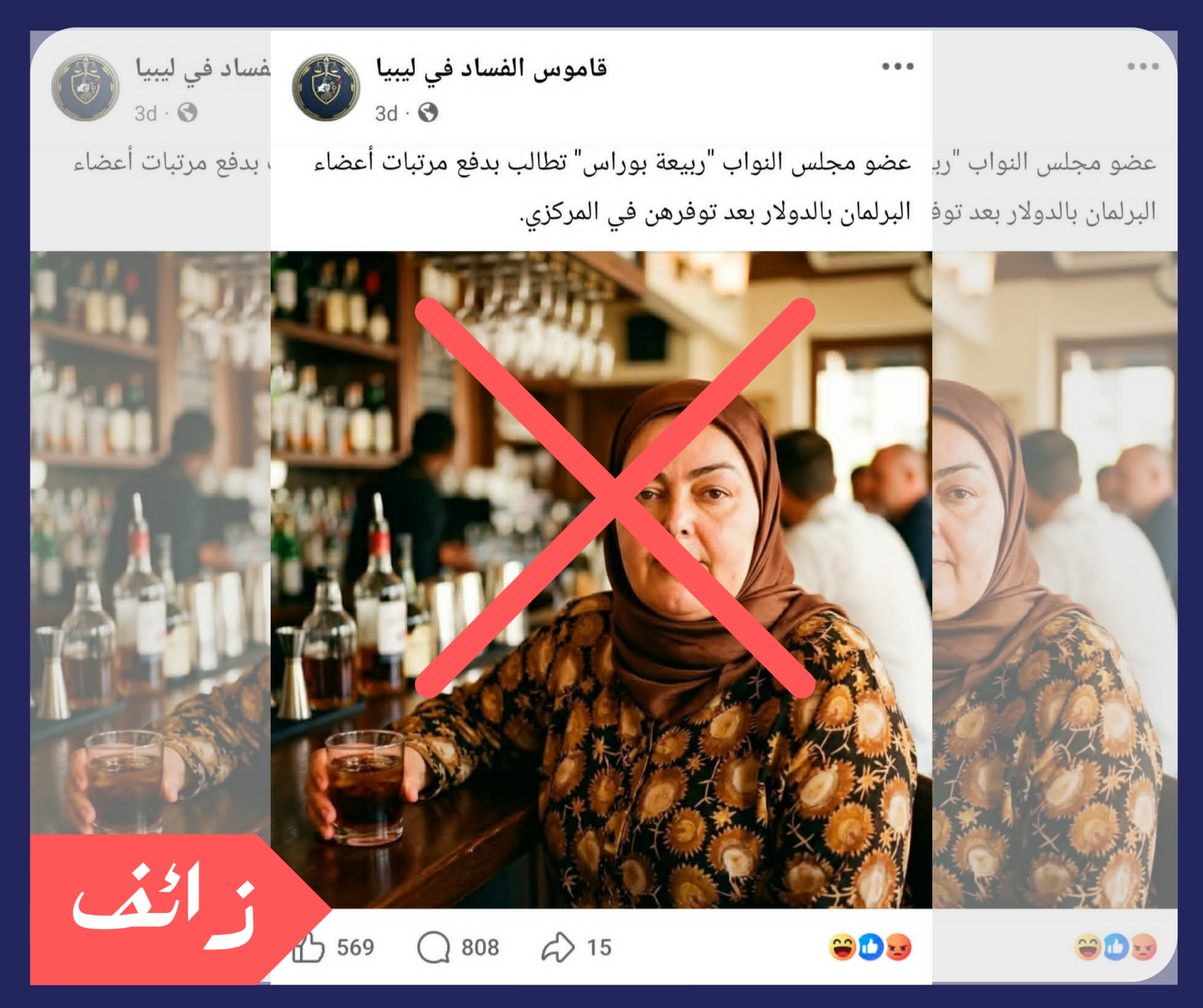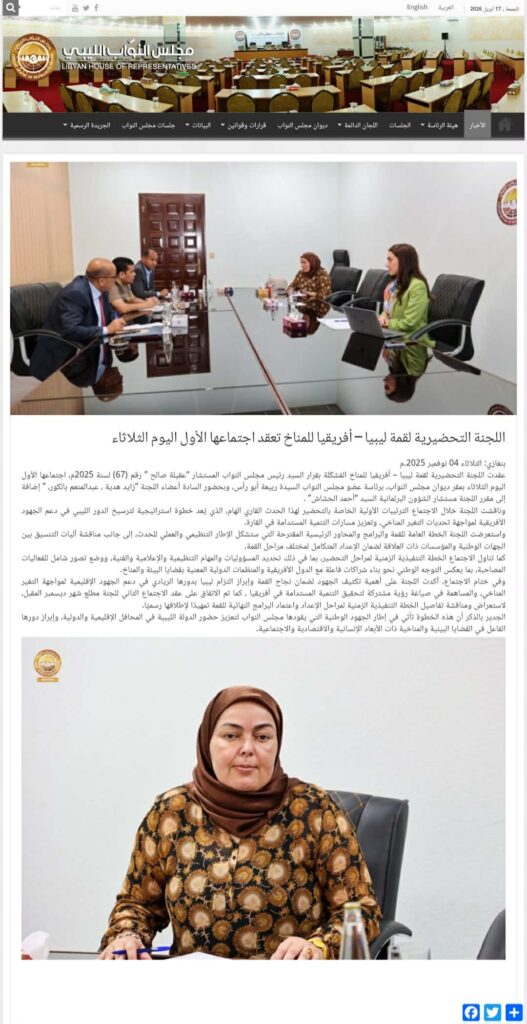 بالتدقيق في الصورة المرفقة مع الادعاء، تبين أنها مفبركة ومقتطعة من صورة أصلية تعود إلى اجتماع اللجنة التحضيرية لقمة “ليبيا – إفريقيا للمناخ” الذي شاركت فيه النائبة بتاريخ 4 نوفمبر 2025.