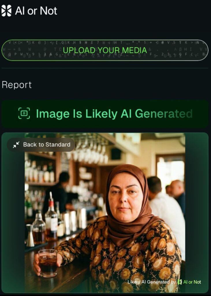 • عند فحص الصورة عبر أداة AI or No، أظهرت النتيجة أنها مُولّدة بالذكاء الاصطناعي.