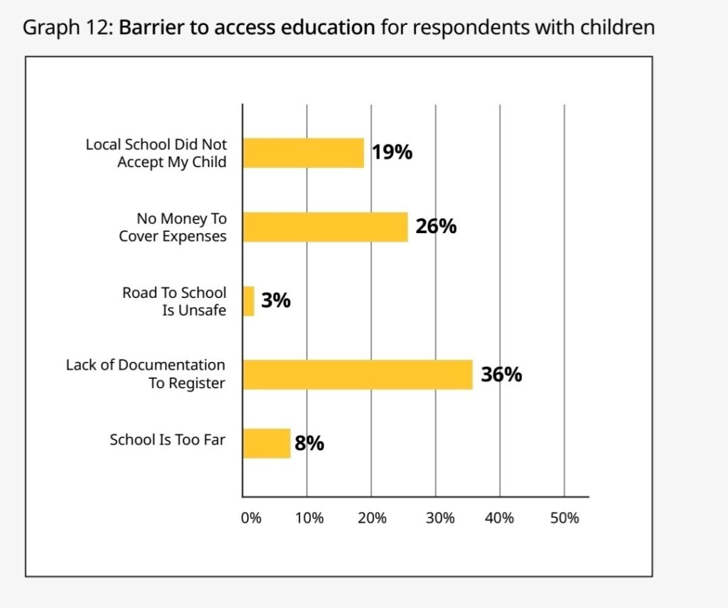 - مشاكل في تعليم الأطفال، خصوصًا لمن فقدوا أوراقهم الثبوتية.